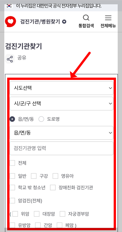 그리고 자신이 찾고자하는 검진기관의 정보를 입력합니다.